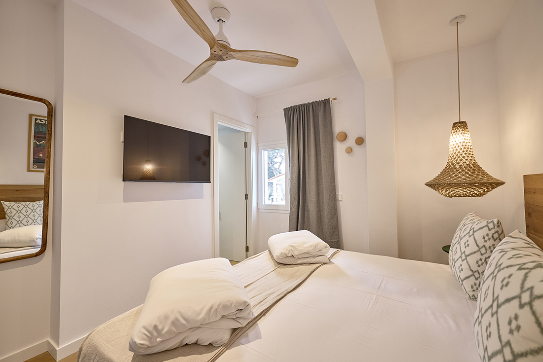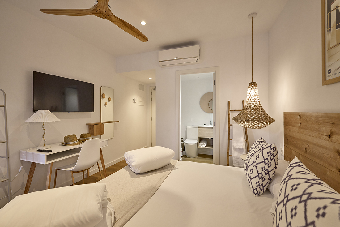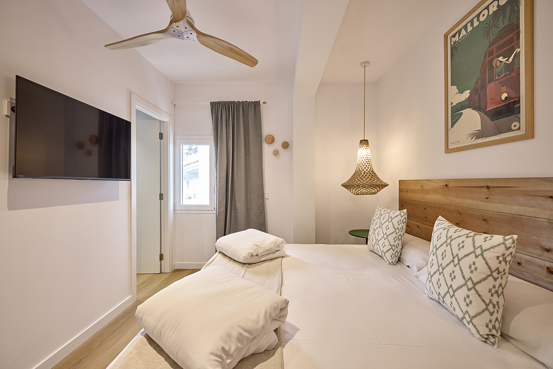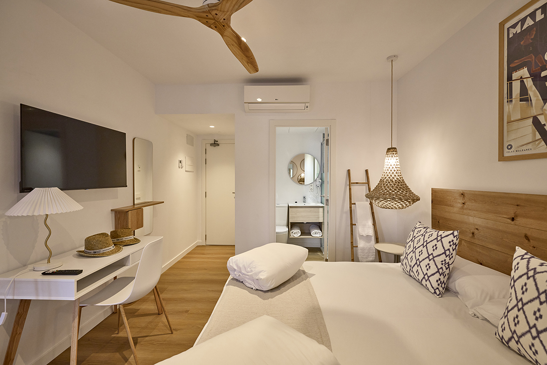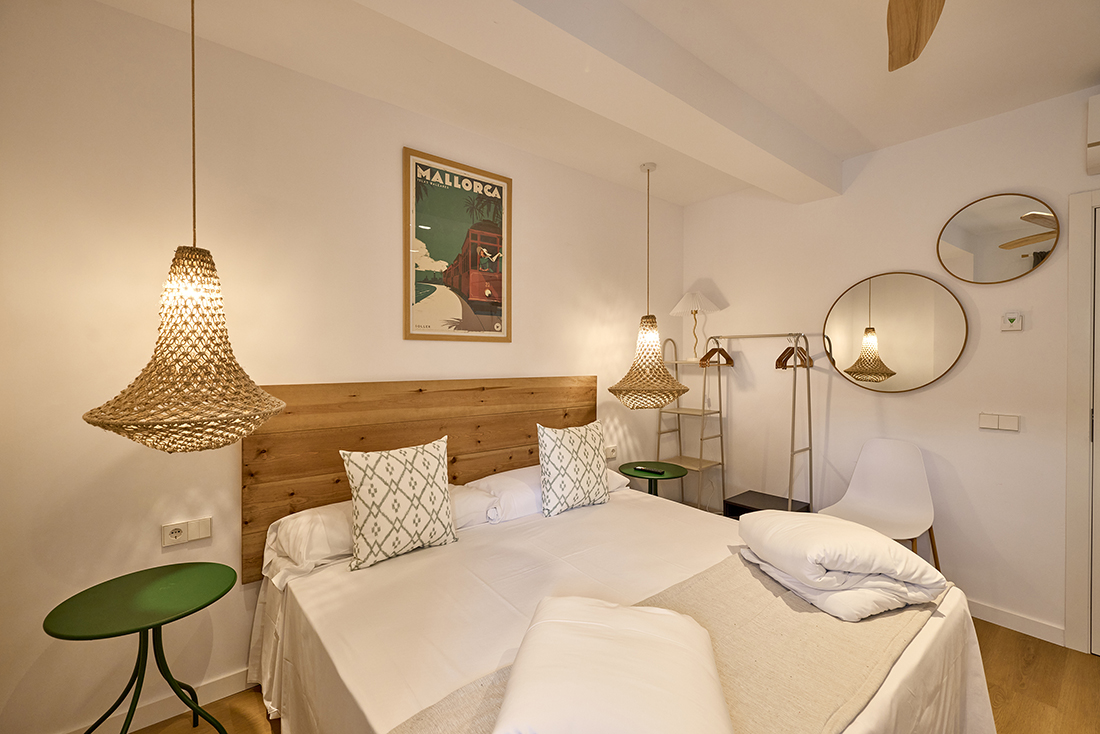 Habitaciones pensadas para tu descanso En INNER Hostal Es Molí cuidamos cada detalle para que te sientas cómodo desde el primer momento. Nuestras habitaciones están diseñadas con un estilo funcional y mediterráneo, luminosas, frescas y equipadas con todo lo que necesitas: aire acondicionado, baño privado, Wi-Fi gratuito y servicio diario de limpieza. Algunas de nuestras habitaciones cuentan con balcón o terraza, perfectos para disfrutar del aire libre y los cálidos atardeceres mallorquines.
